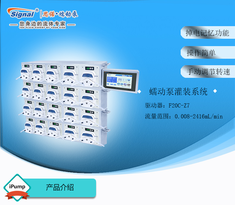此灌裝系統由20通道組成,通道數量可定制,大可擴展至32通道;可安裝YZ15、YZ25泵頭;
