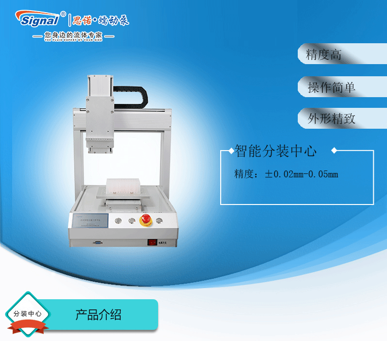 ? ? ?1.桌面型設計,占用空間小,適用于批量流水分裝作業 ? ? ?2.轉速高達300mm/s,高耐久性 ? ? ?3.重復精度:±0.02mm-0.05mm ? ? ?4.可存儲999個工藝文件 ? ? ?5.執行單元:分配型蠕動泵或灌裝系統 ? ? ?6.可實現32通道分裝