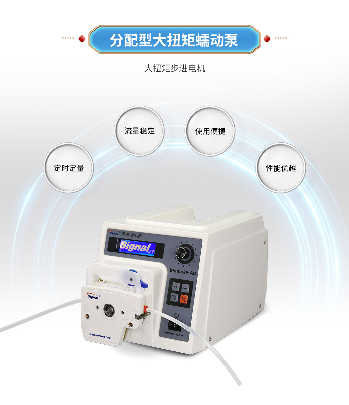 2.大扭矩步進電機驅動,適合多泵頭串聯使用;